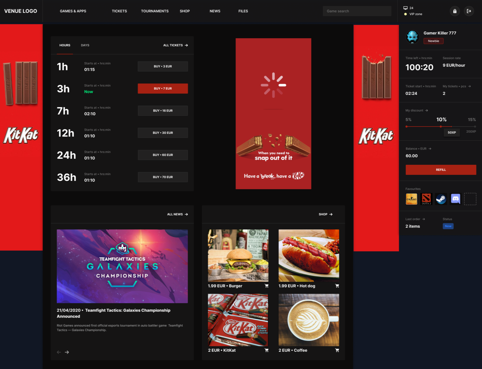 Tell your customers about new snacks and drinks that they can order in client interface.